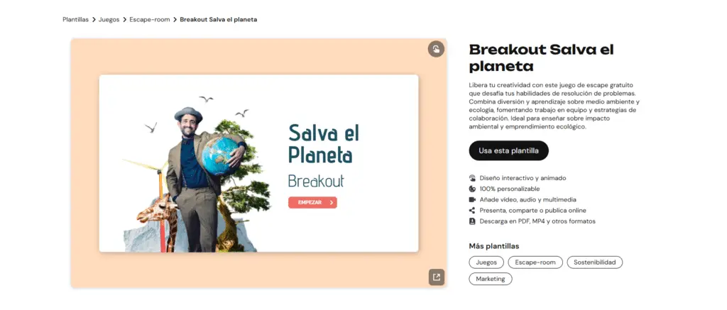 Un escape room virtual puede incluir pistas en forma de descripciones, audios o imágenes que el estudiante debe interpretar para “resolver” un problema ambiental ficticio.